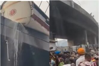 Residents Defy Safety Warnings As Diesel Tanker Spills Fuel On Liverpool Bridge, Apapa